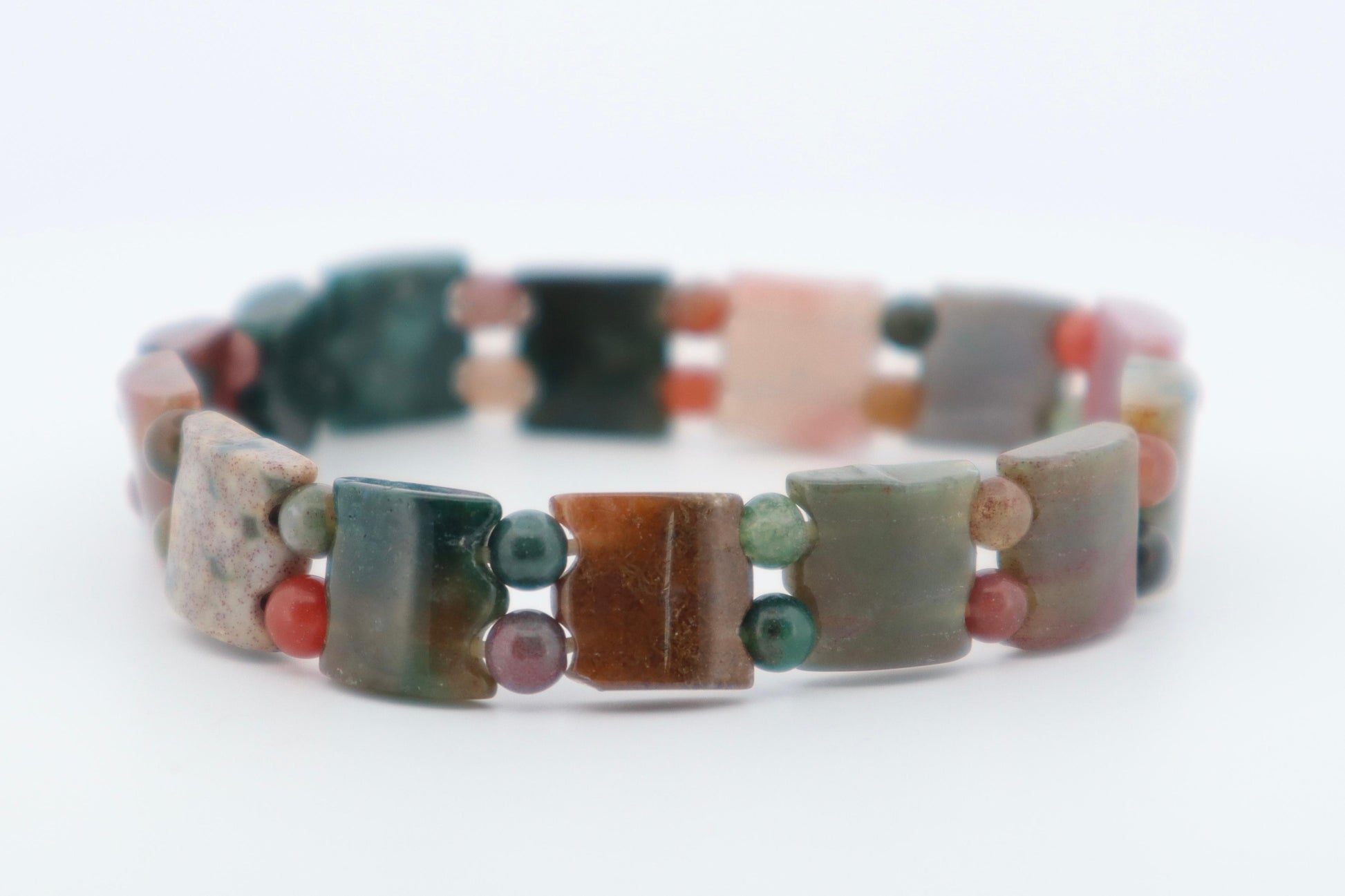 The square flat beads offer a modern design while retaining the stone's grounding and empowering energy.