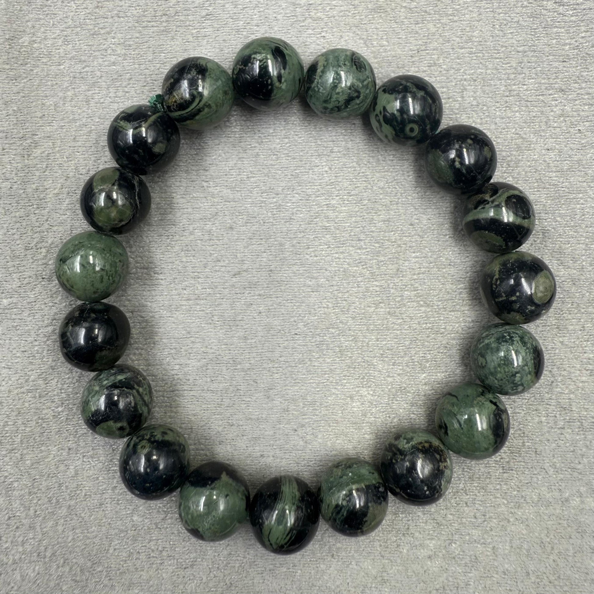 The deep green beads with unique black swirls give this bracelet a bold, earthy, and mystical appearance. Its larger 10mm bead size makes it a statement accessory, perfect for those who prefer a stronger, more substantial crystal bracelet. Stretchable and unisex, it is ideal for daily wear, meditation, yoga, or energy healing practices.