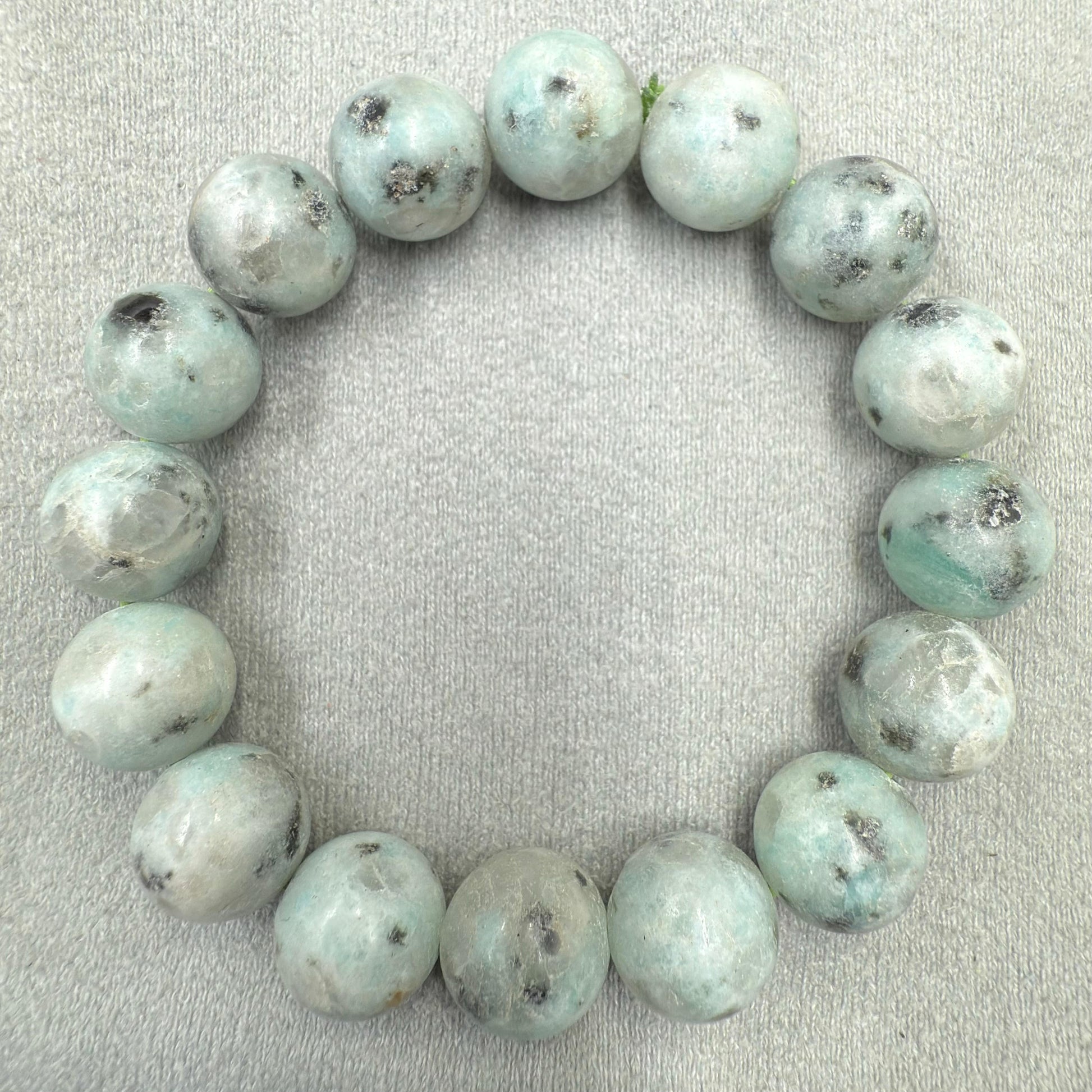 This bracelet is stretchable and easy to wear, designed to fit most wrists comfortably. Whether you are meditating, attending a formal event, or just going about your day, the Kiwi Jasper 12mm adds a touch of elegance and spiritual depth to any outfit.