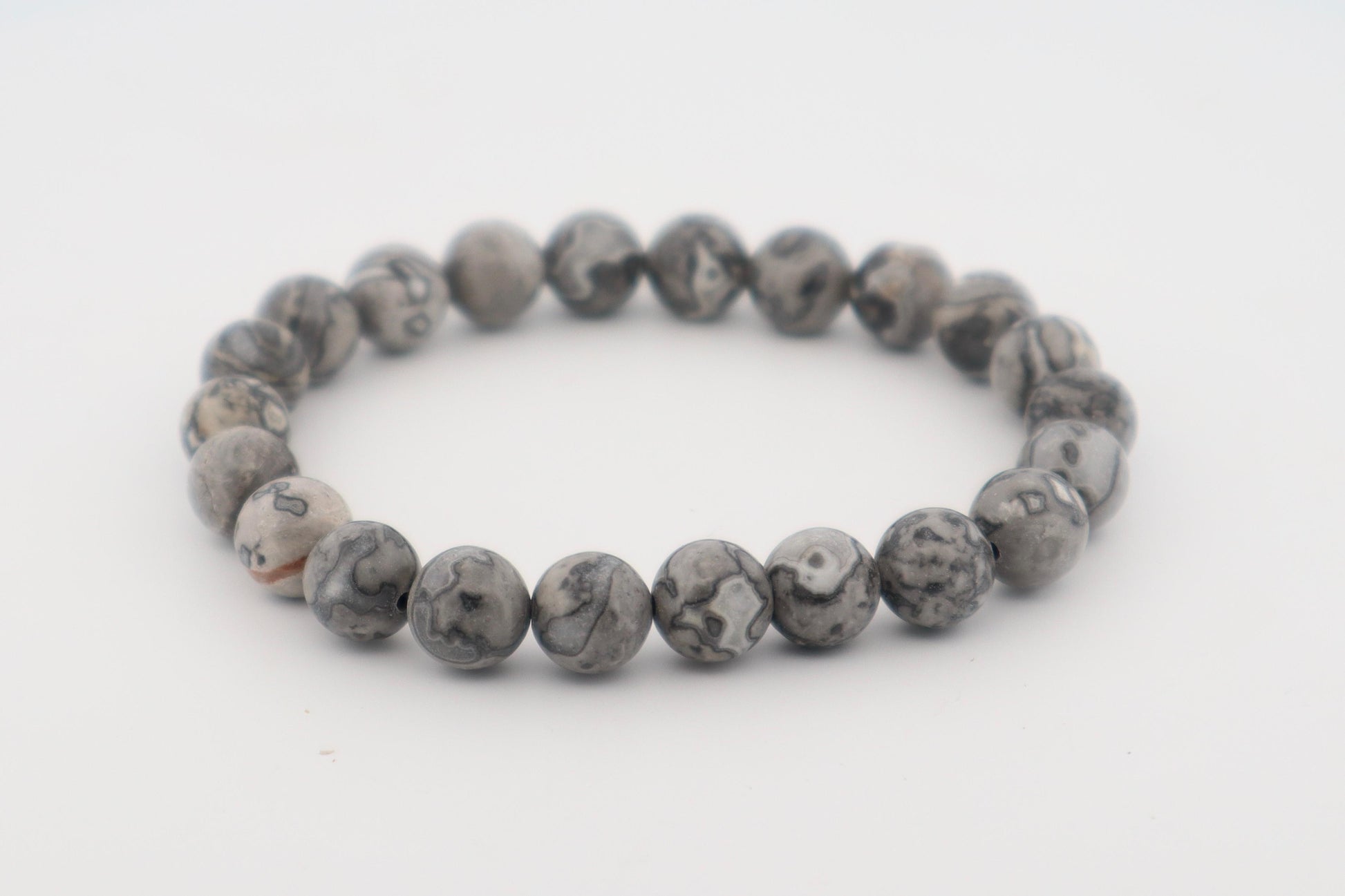 The Mapstone Bracelet, made from a unique form of jasper known for its naturally occurring map-like patterns, is a symbol of inner journey, grounding energy, and calm determination.