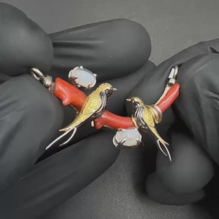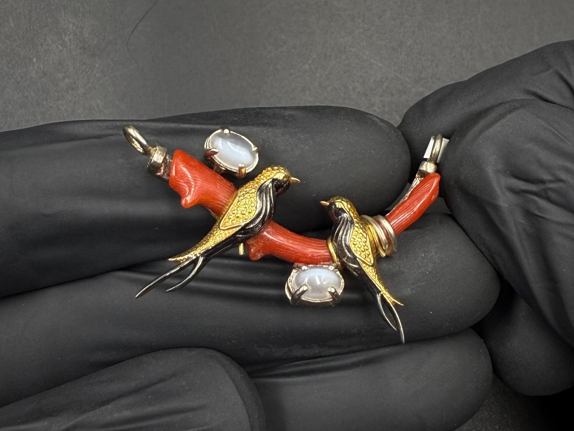 Natural Red Coral Sterling Silver Dual Sparrow Locket