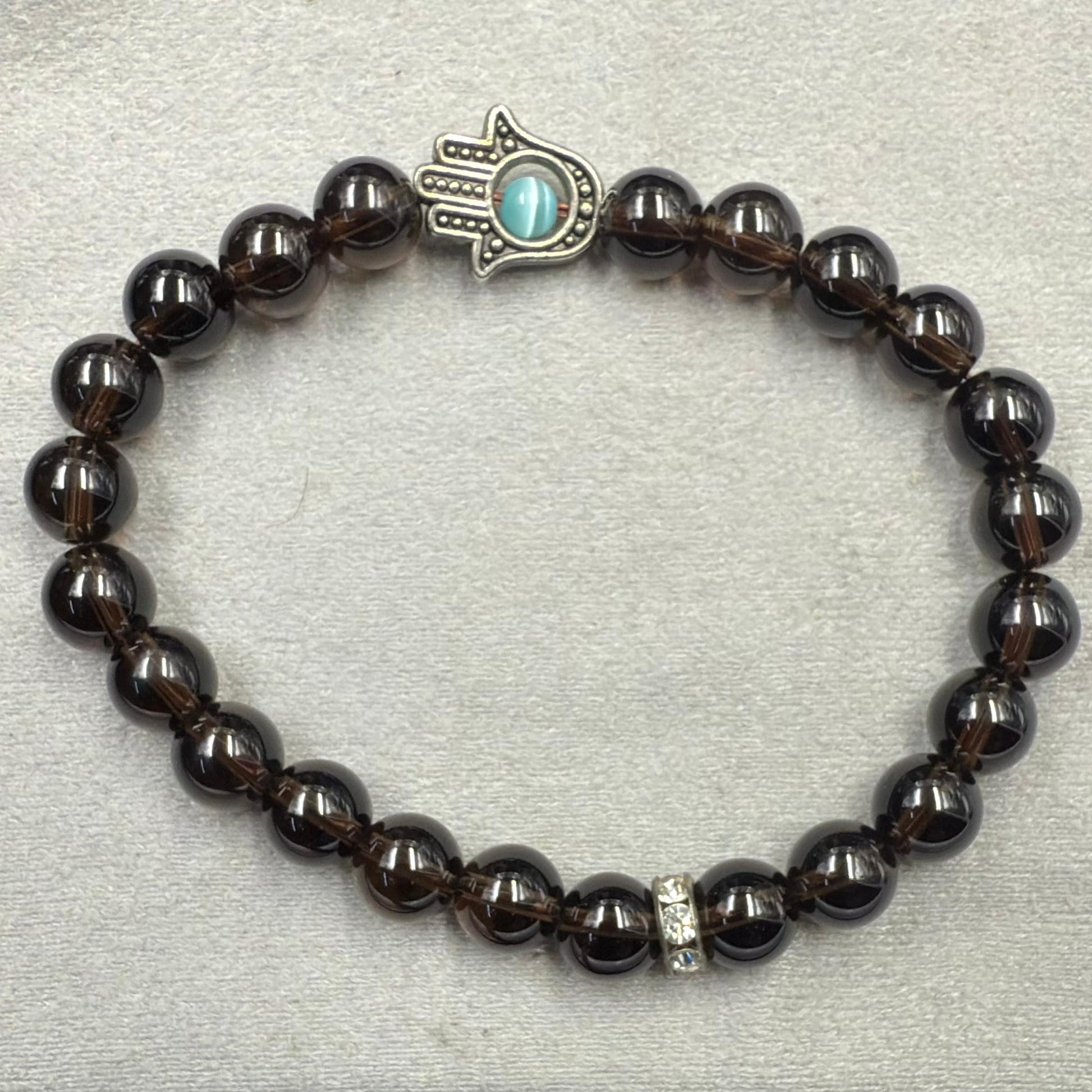 Keywords: Natural Smoky Quartz Bracelet 8mm hamza charm, natural gemstone bracelet, Natural crystal, spiritual healing stone, handmade gemstone jewelry, energy balancing accessory, certified crystal bracelet, wellness fashion jewelry