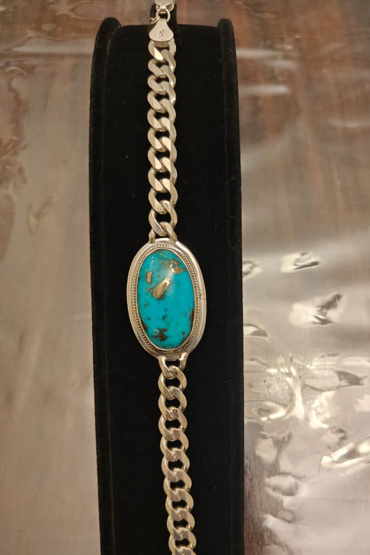 Sterling Silver Bracelet with Natural Turquoise (Firoza) 34.50 grams